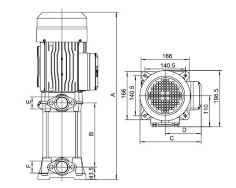 ابعاد پمپ طبقاتی عمودی لئو EVP2